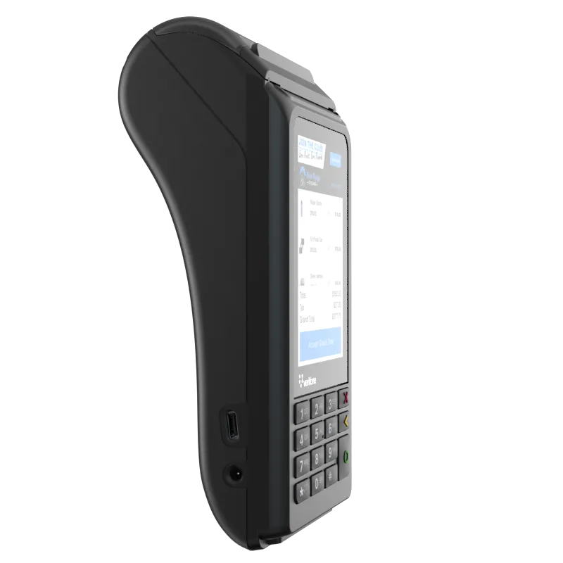 Your new ‘go-to’ portable payment device featuring a large color display, GEO location capabilities, NFC and EMV payment acceptance, the V210 gets the job done. And, with connectivity options from 4G LTE to Wi-Fi to Bluetooth®, your business is good to go!