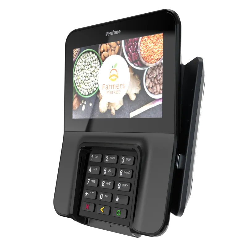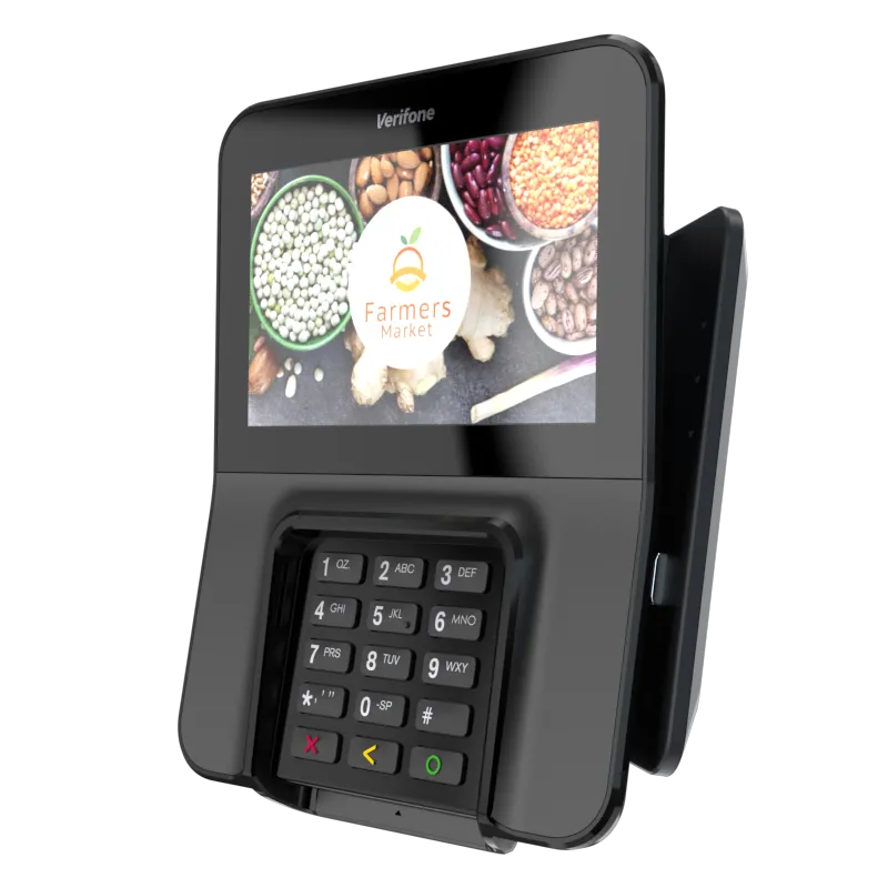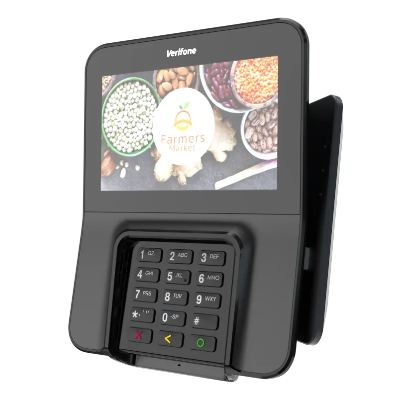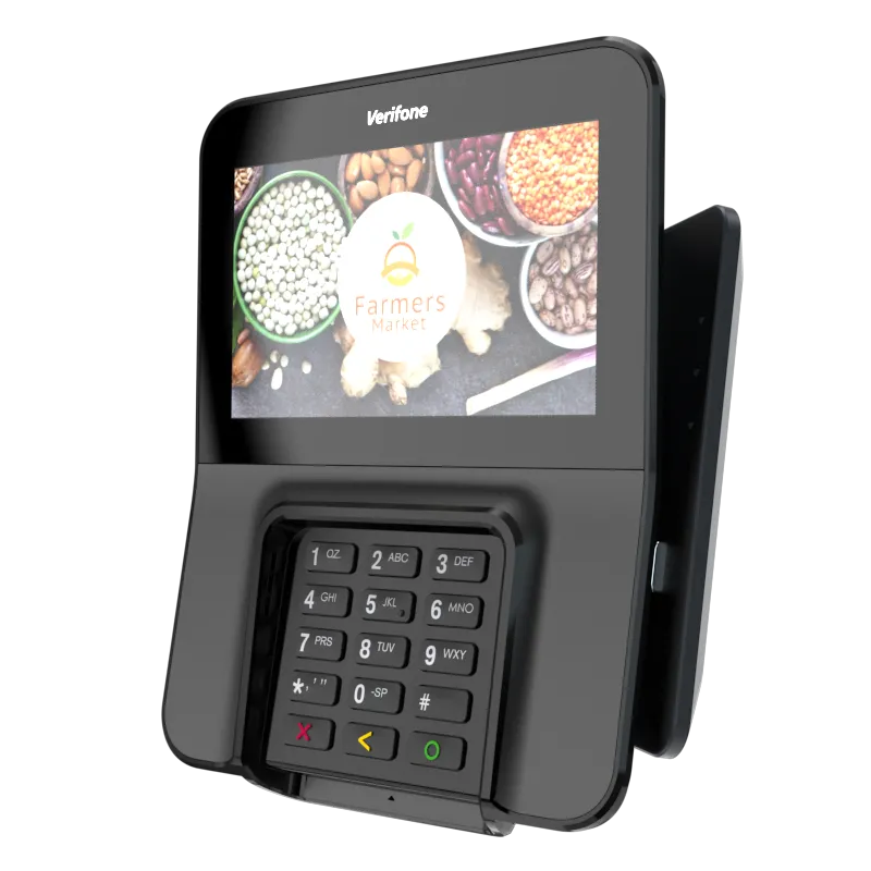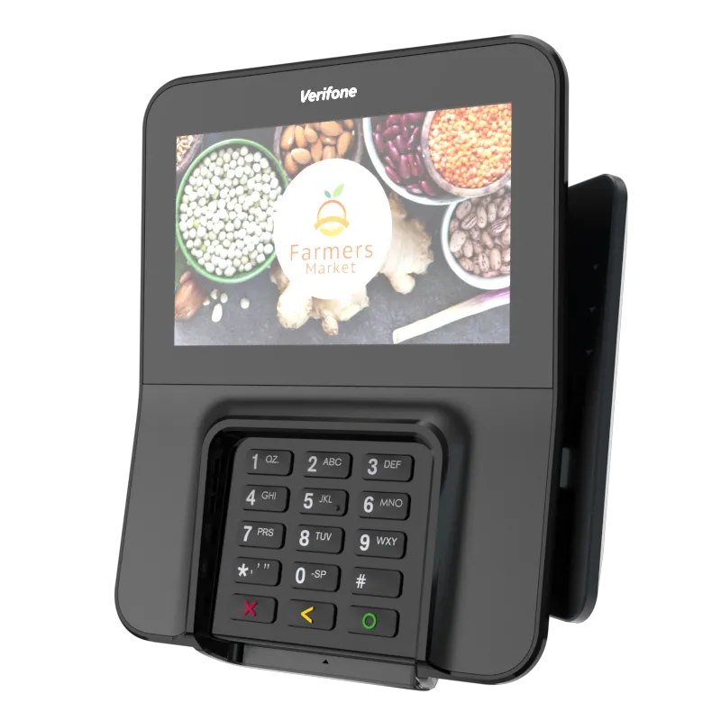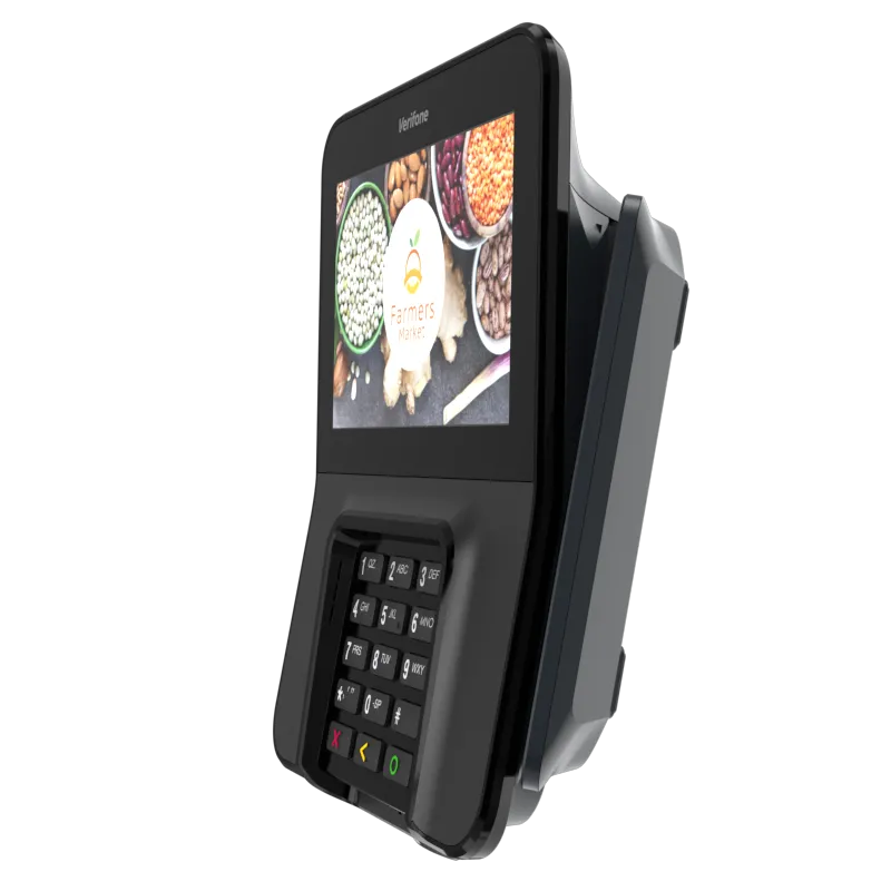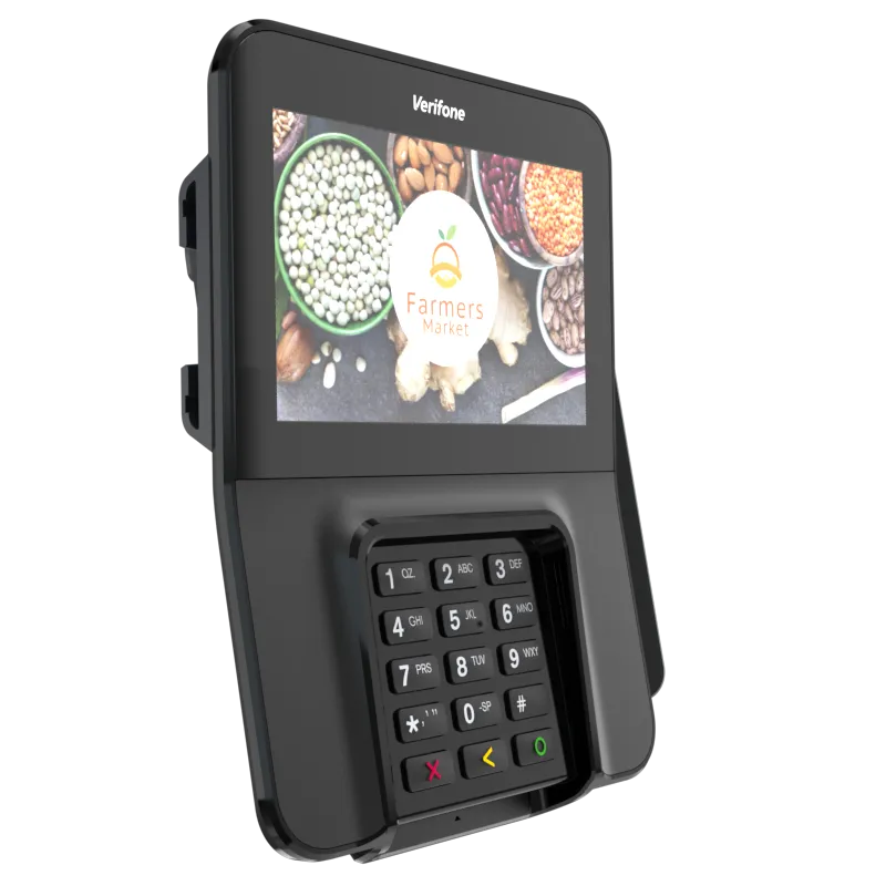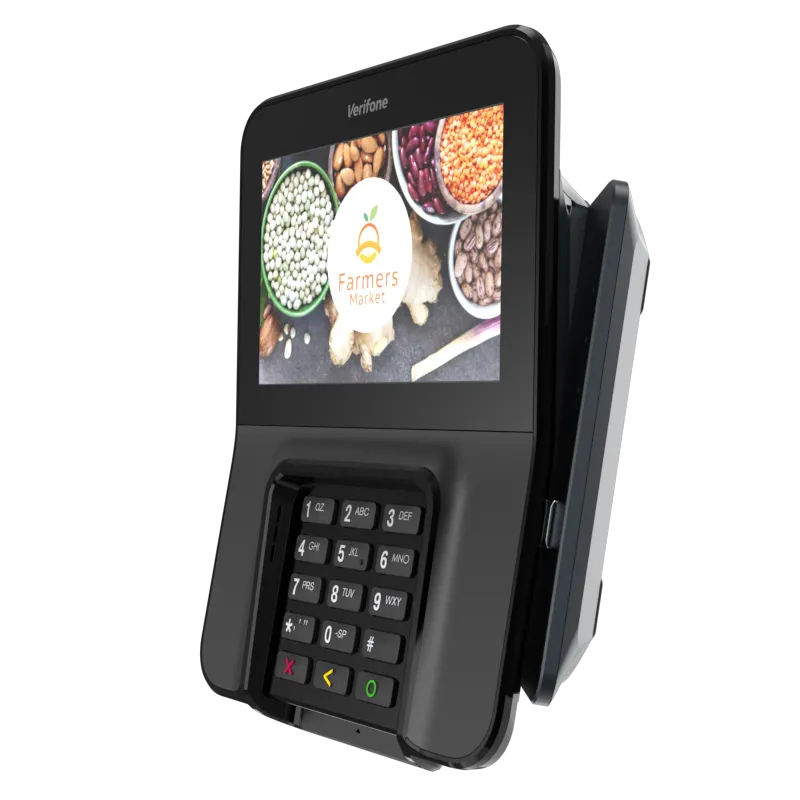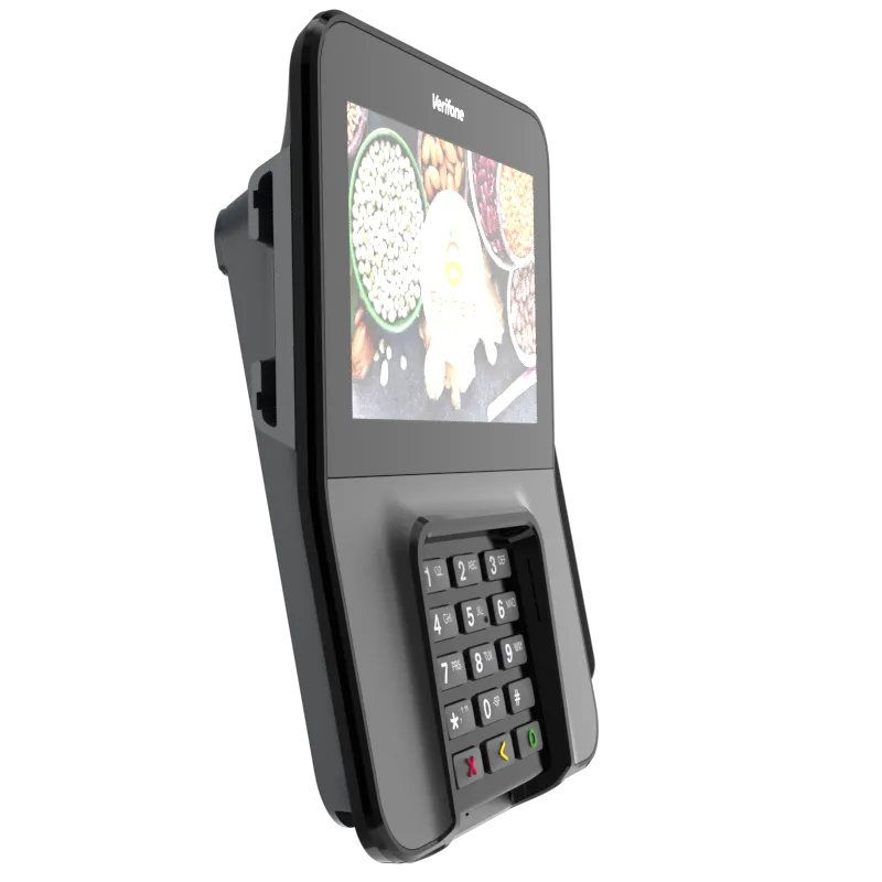 The Verifone M400 is an excellent payment device for your multilane environment. With a large split screen that simultaneously displays promotions and ticket items, you can cross-sell, upsell, encourage loyalty program sign-up, and more.