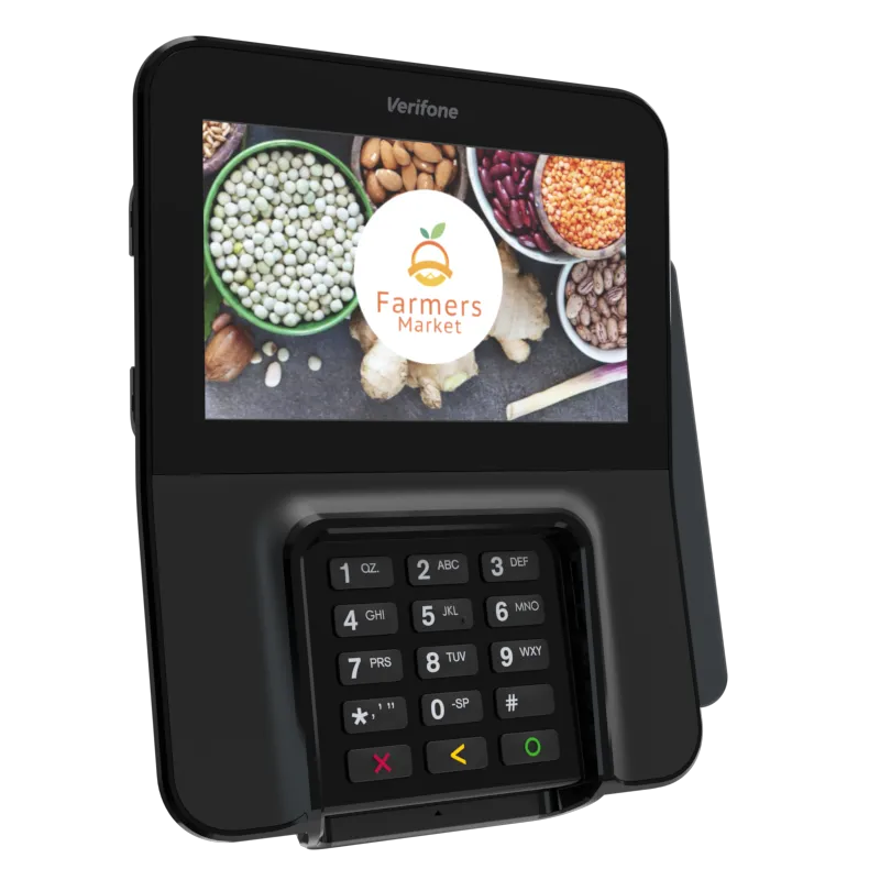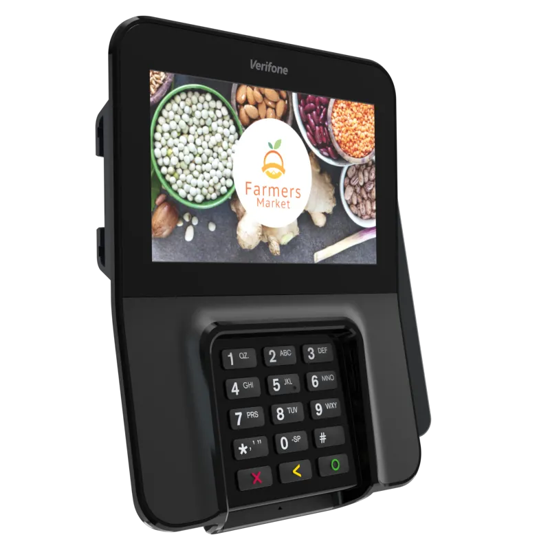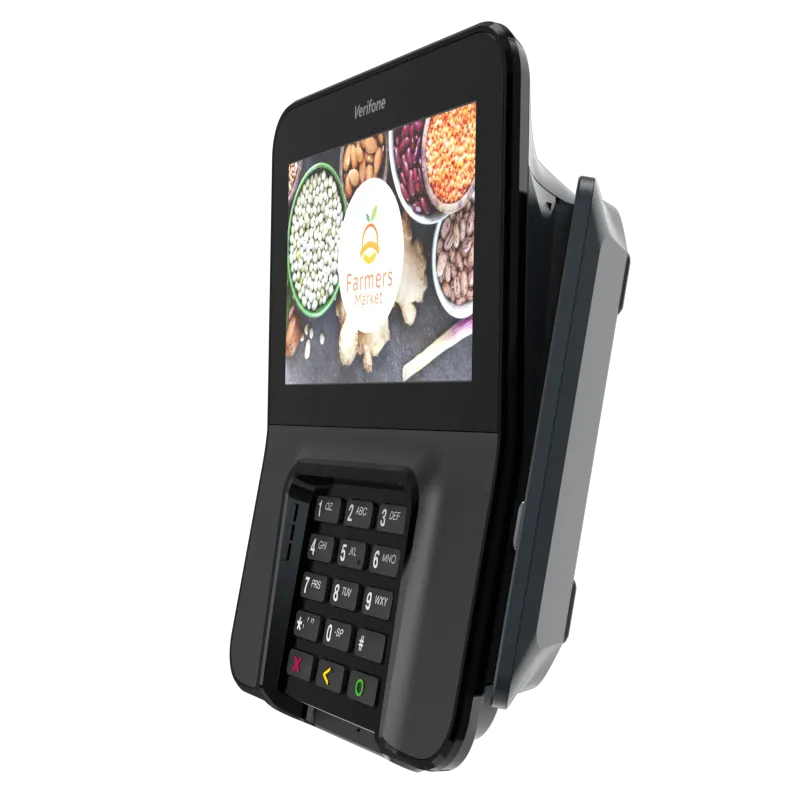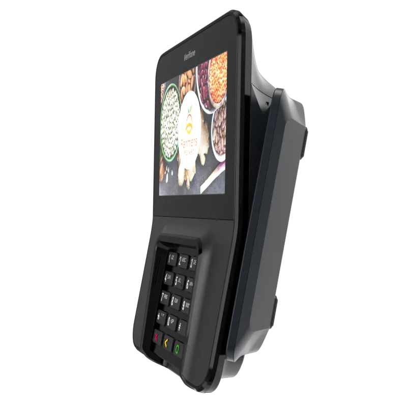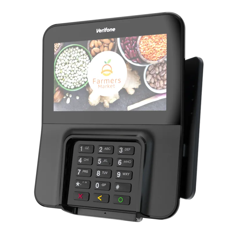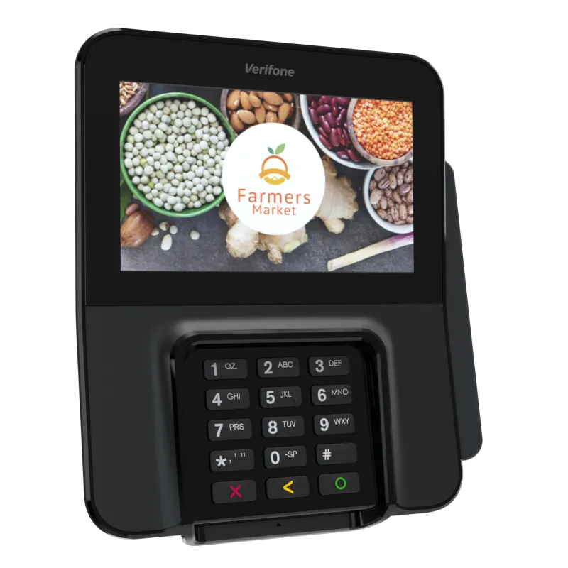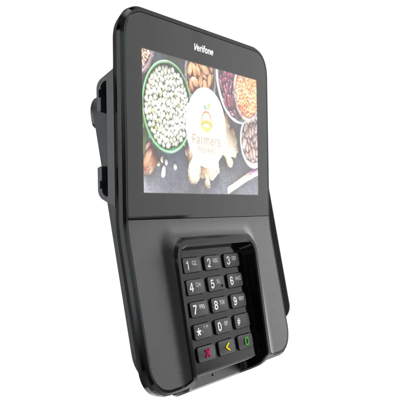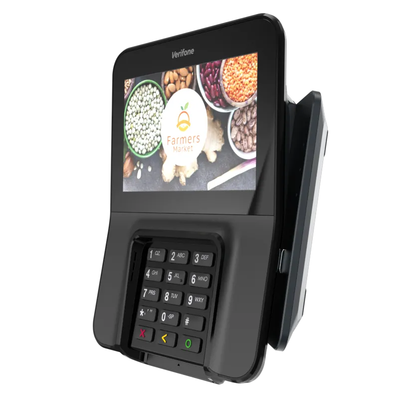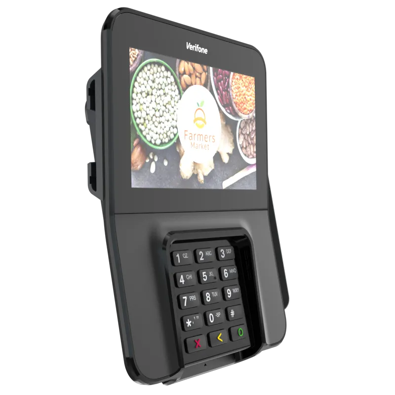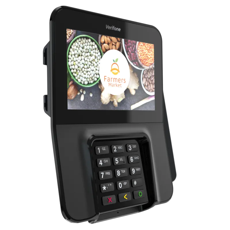 The Verifone M400 is an excellent payment device for your multilane environment. With a large split screen that simultaneously displays promotions and ticket items, you can cross-sell, upsell, encourage loyalty program sign-up, and more.