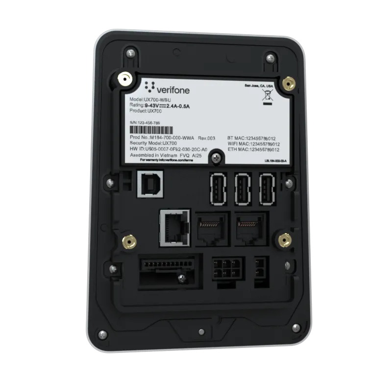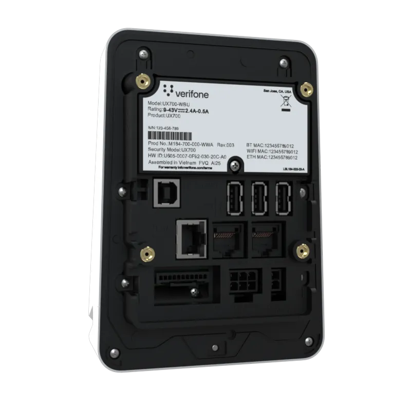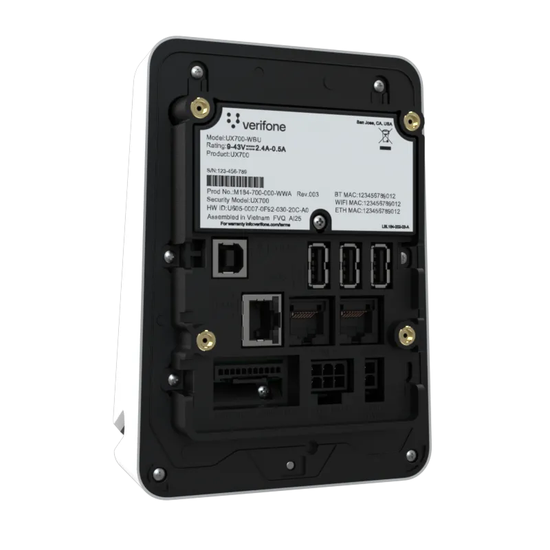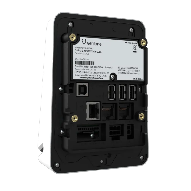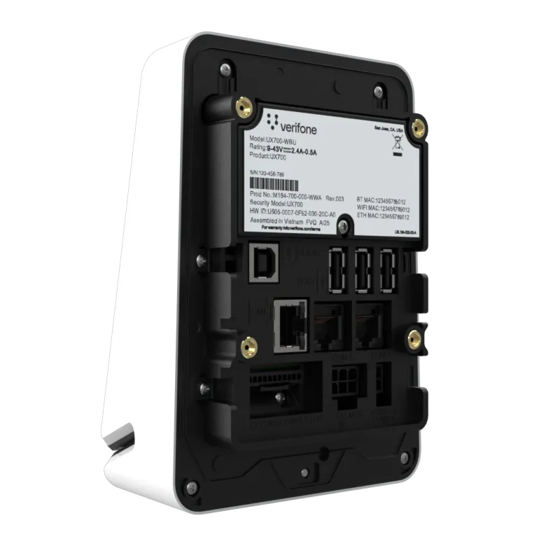 The UX700 is powered by Verifone Cloud Services allowing for omnichannel experiences, advanced reporting and diagnostic tools.