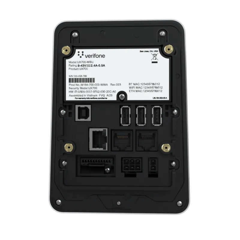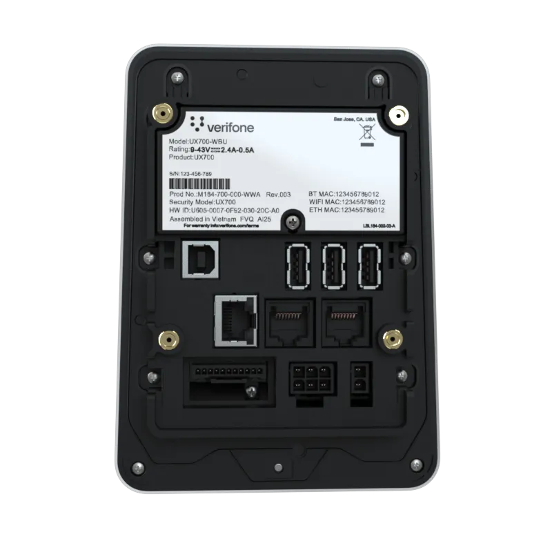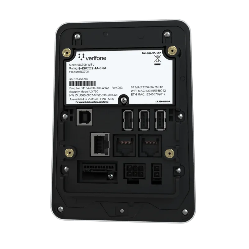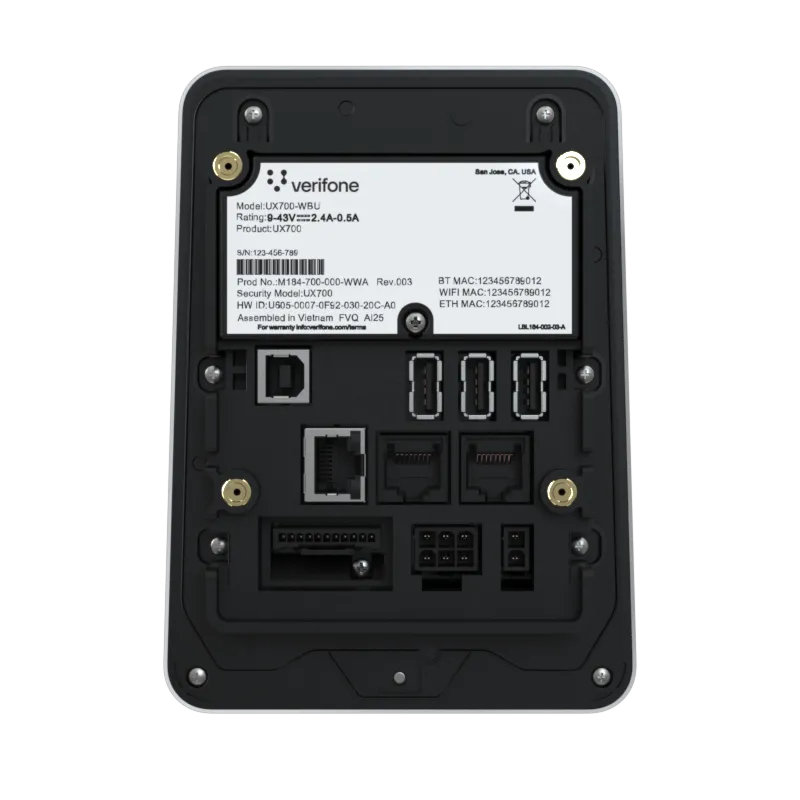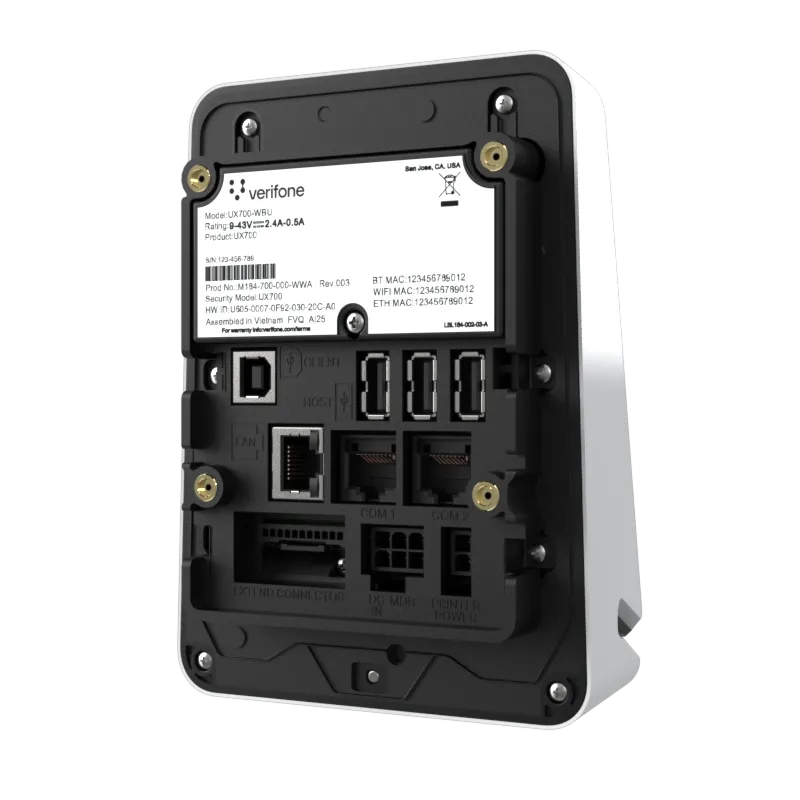 The UX700 is powered by Verifone Cloud Services allowing for omnichannel experiences, advanced reporting and diagnostic tools.